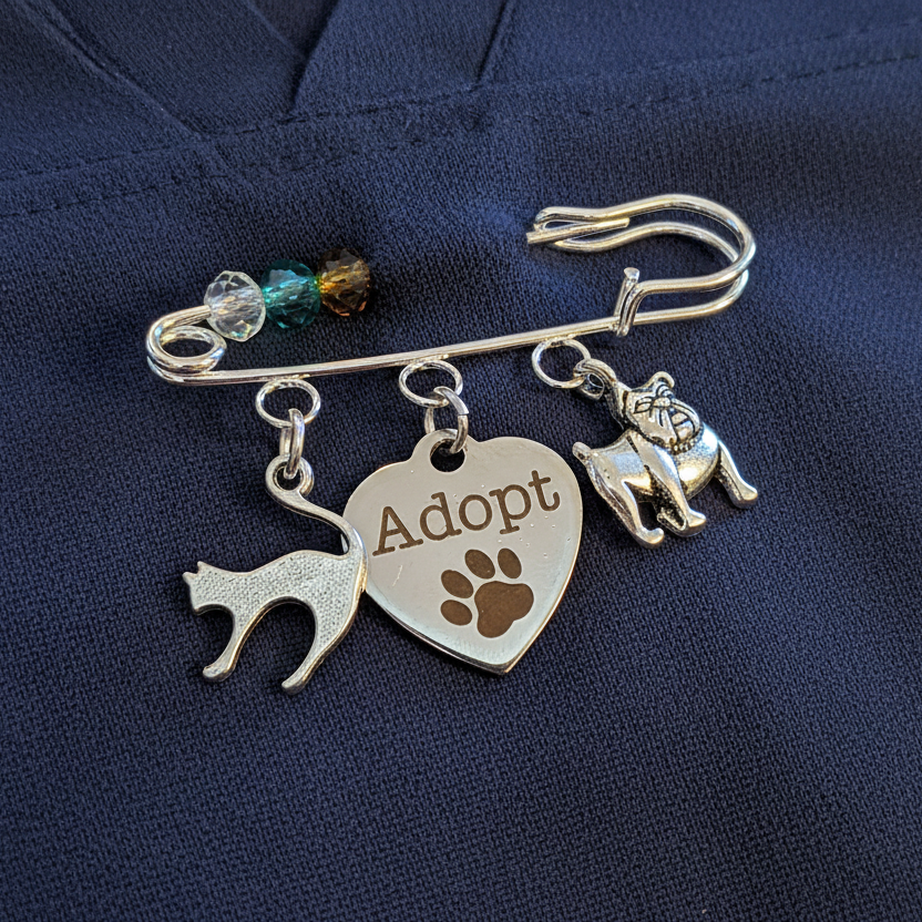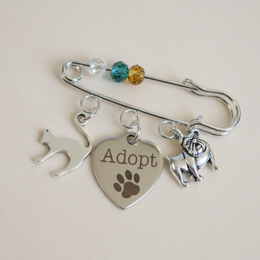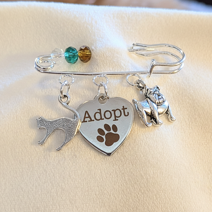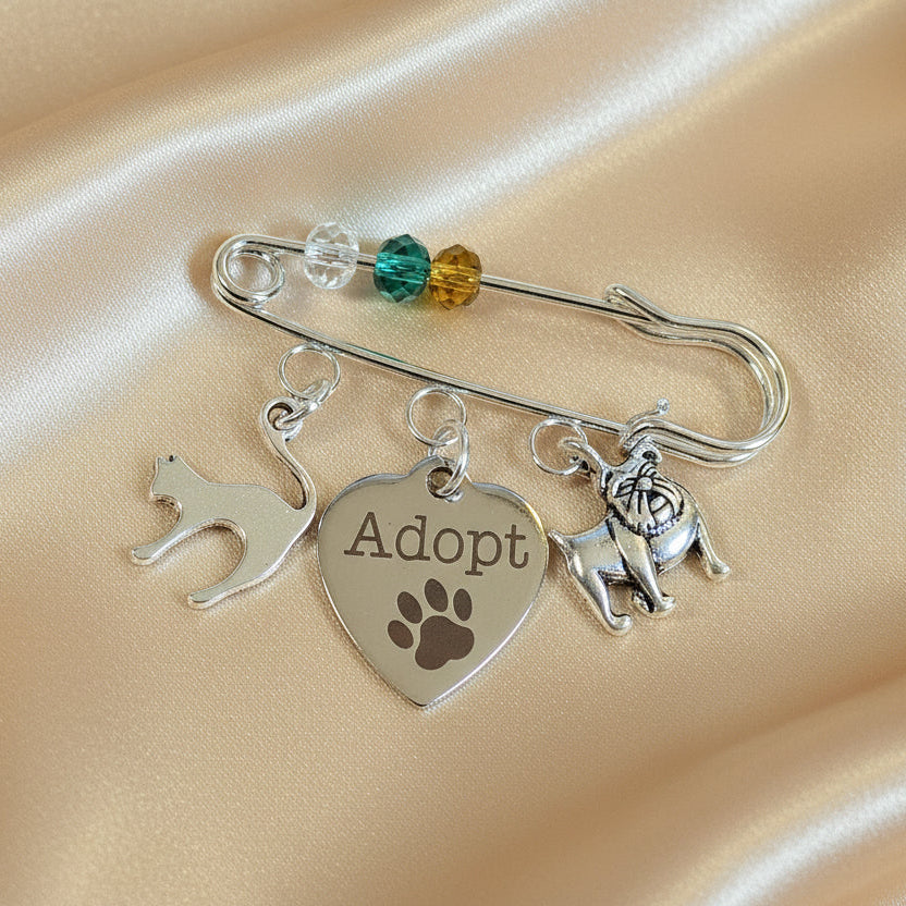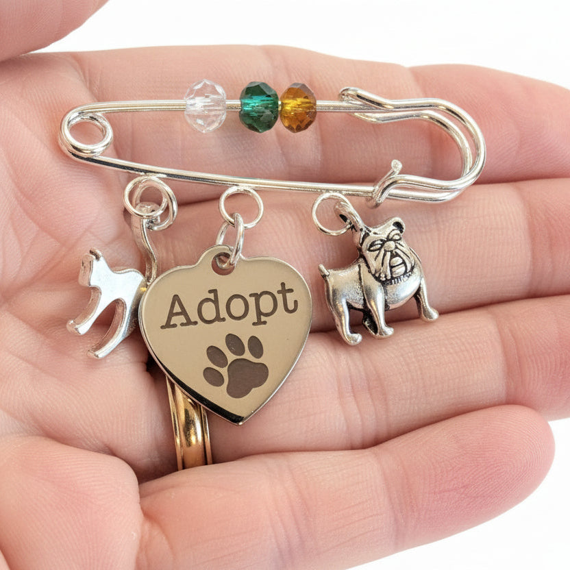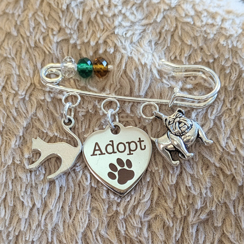 Adopt a Pet Safety Pin Brooch, Purse Charm