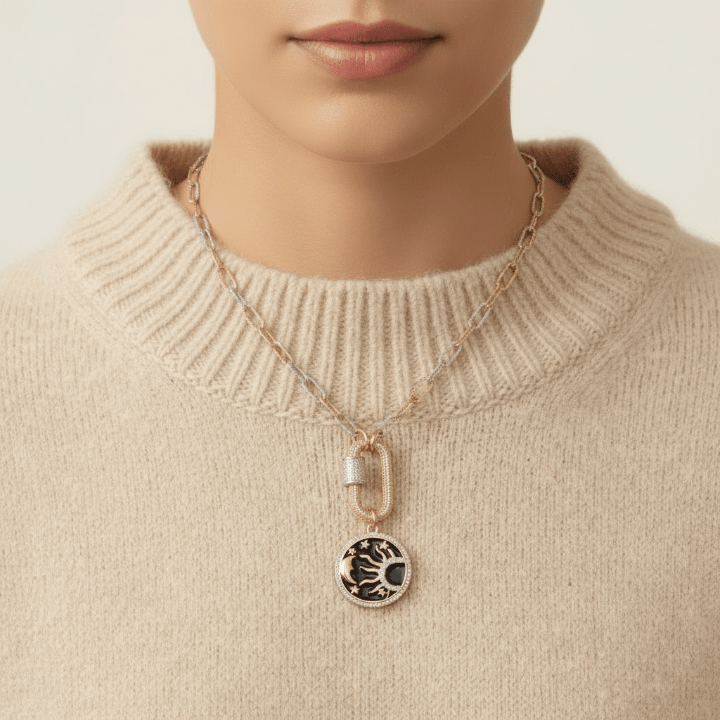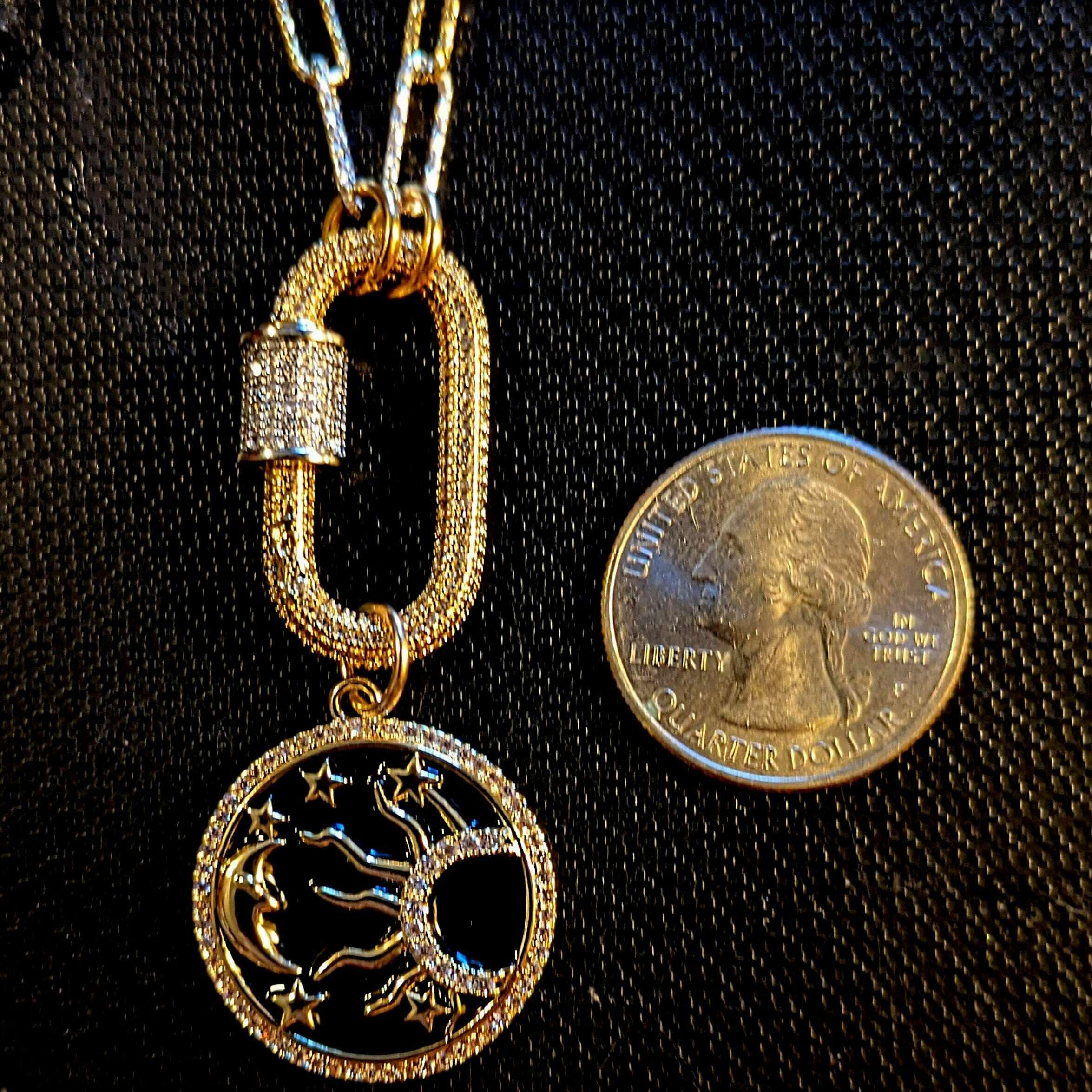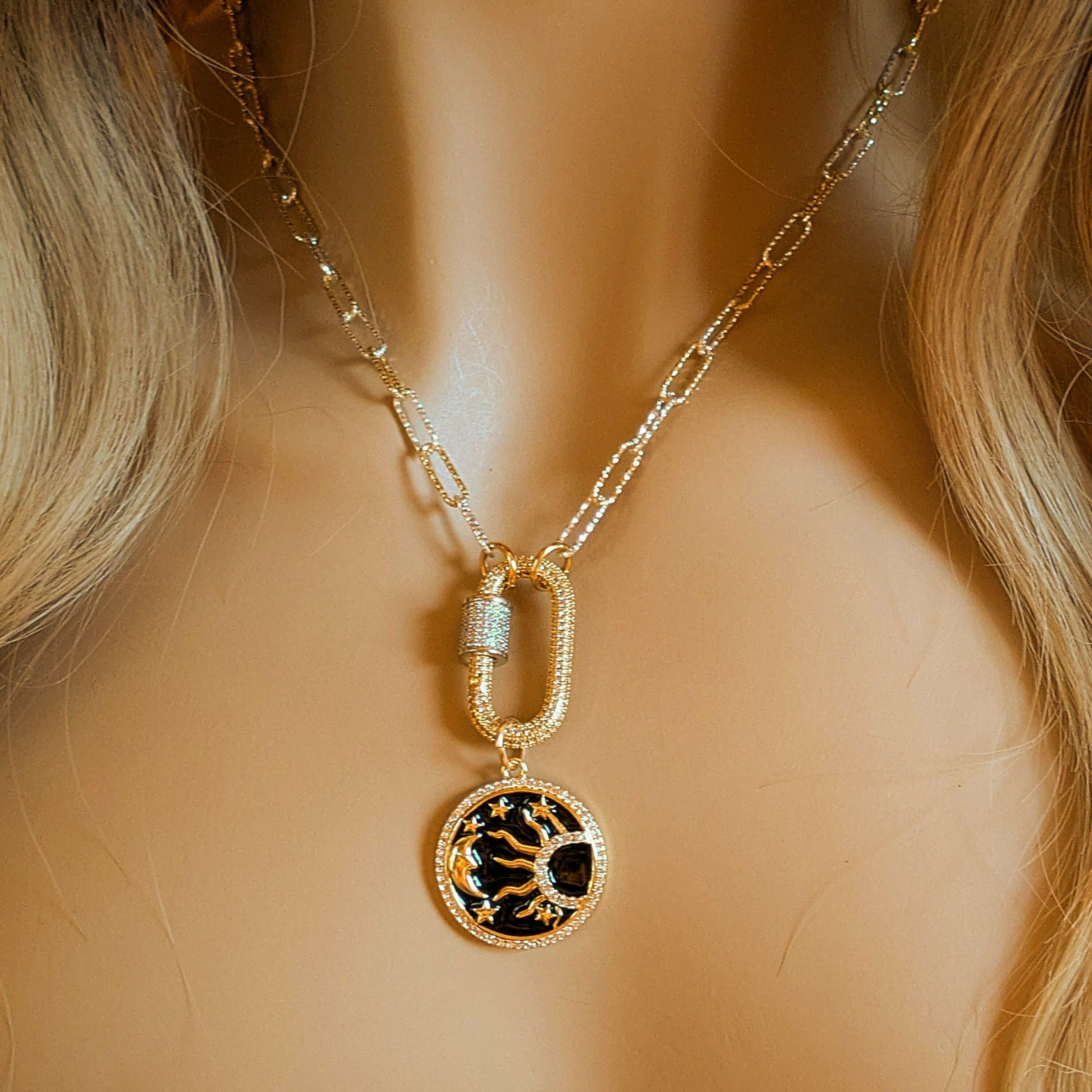 Black Enamel Celestial Pendant Carabiner Necklace, Gold/Silver - 20 inch