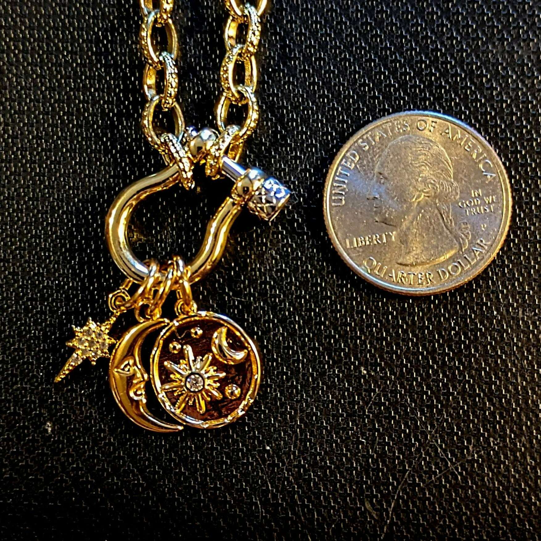 Crescent Moon and Star Carabiner Necklace, Gold - 20 inch