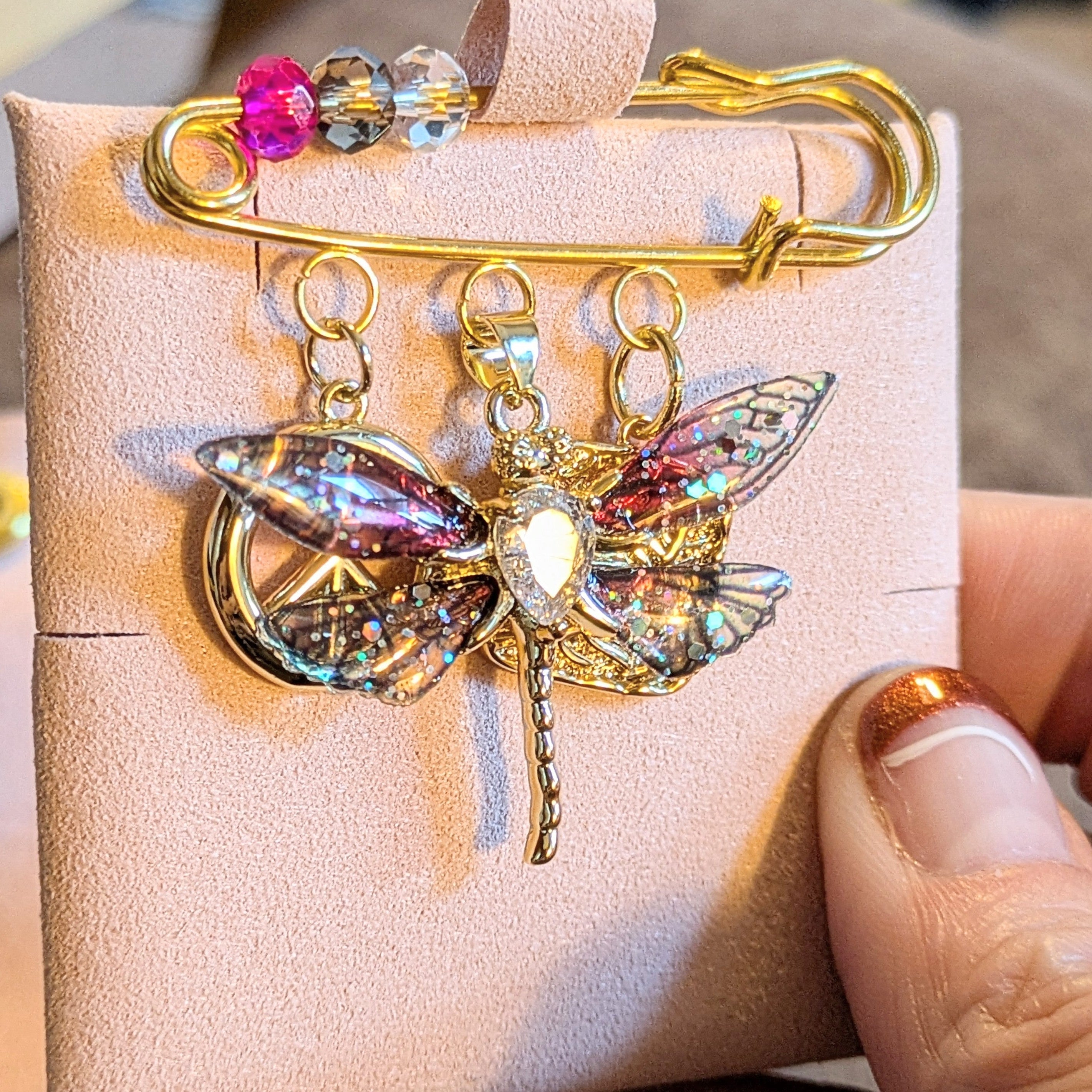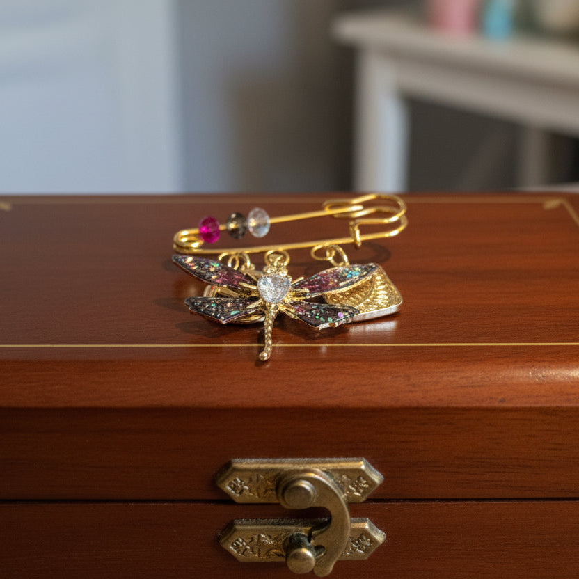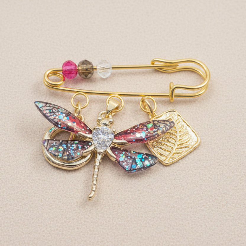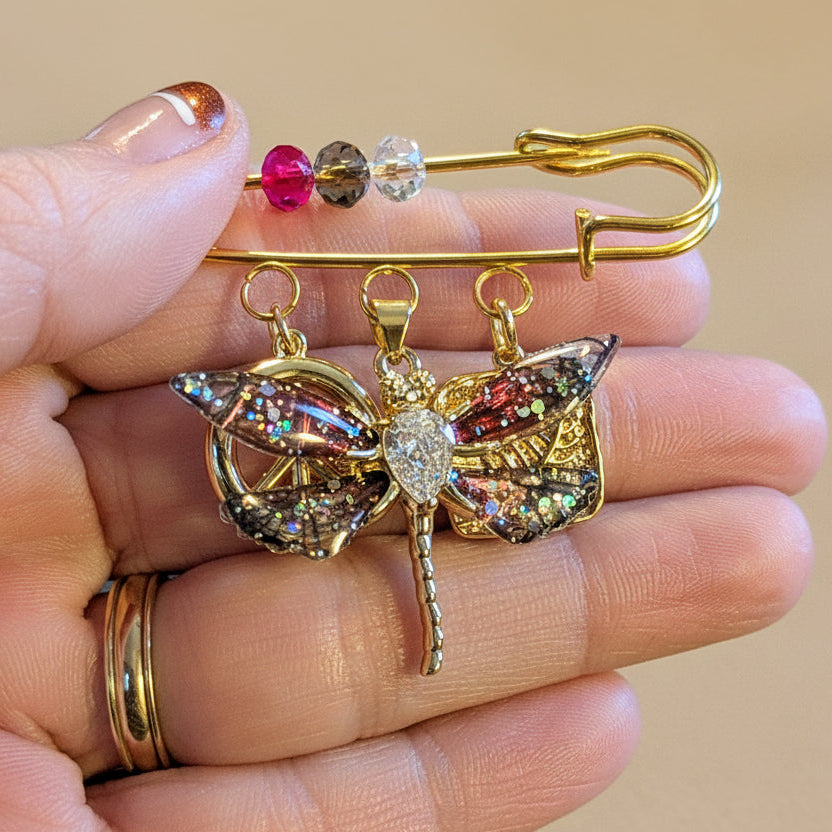 Purple/Red Dragonfly Safety Pin Brooch, Purse Charm