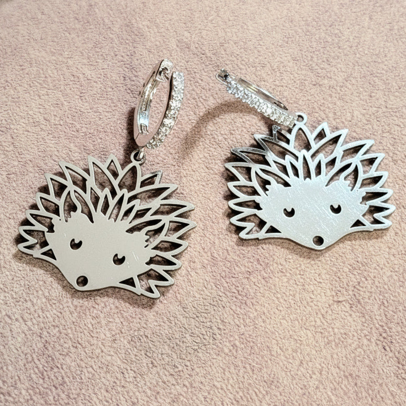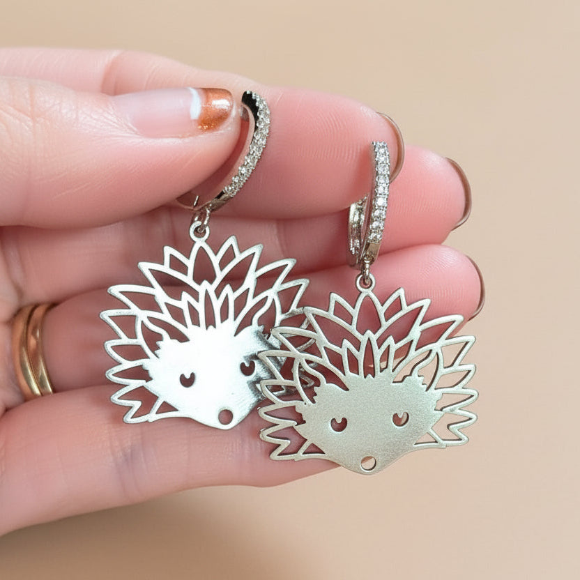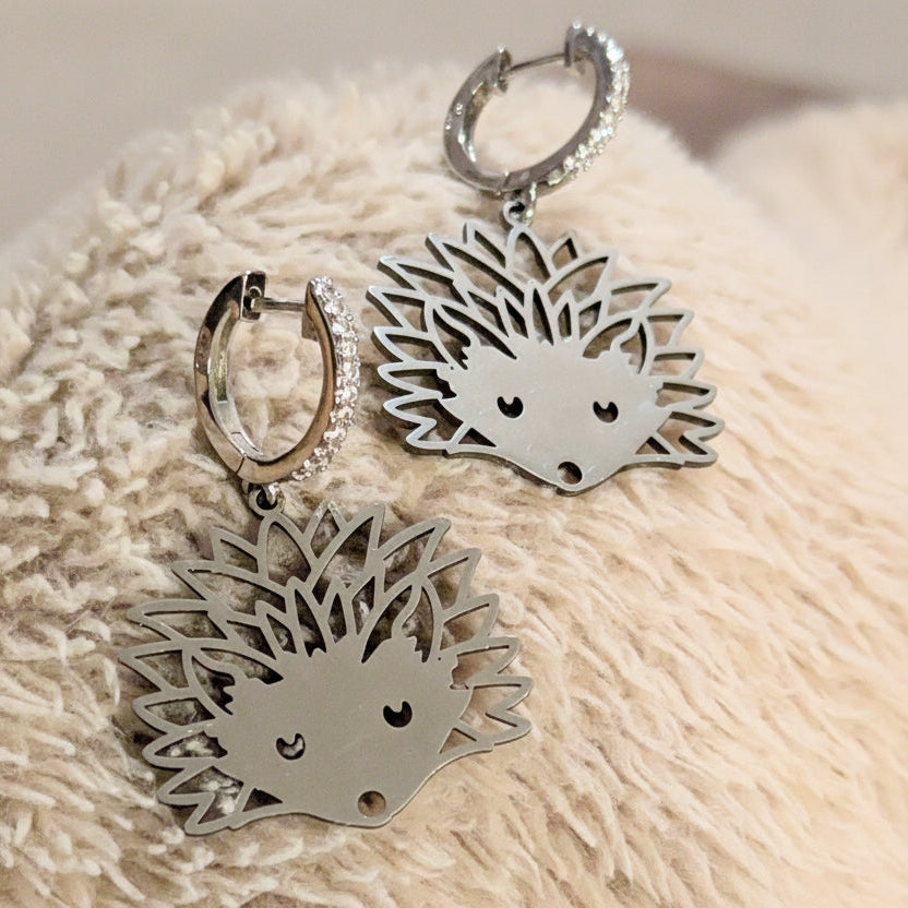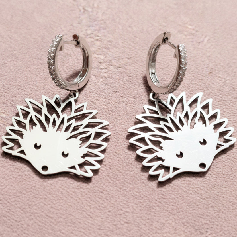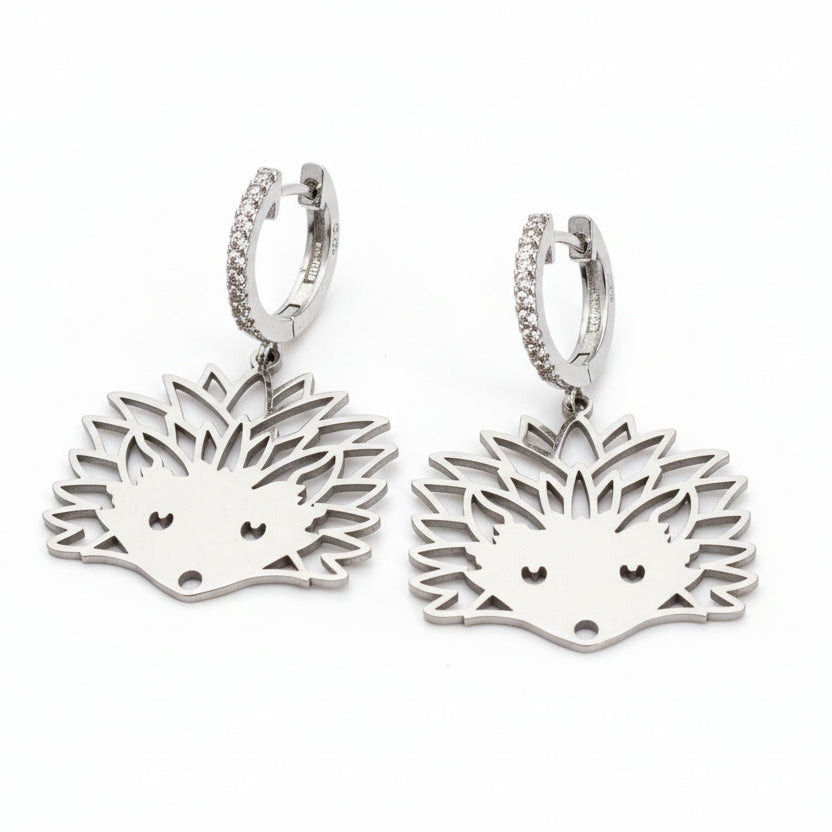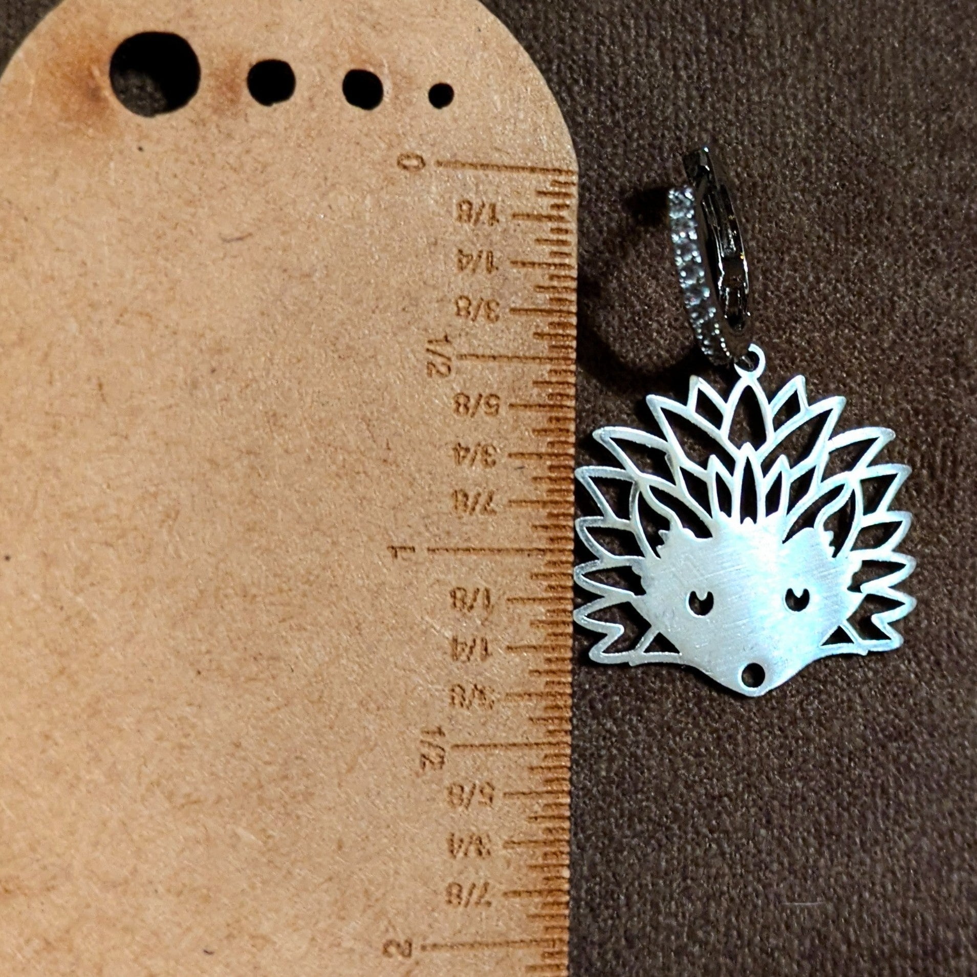 Hedgehog Hoop Charm Earrings-Sterling Silver