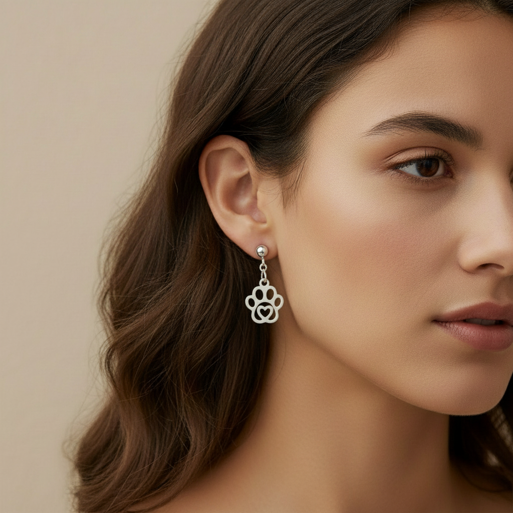 Elevate your style with these adorable Dog Paw Charm Drop Stud Earrings. Perfect for adding a touch of playfulness to your everyday outfits or dressing up for a special occasion. And for those with sensitive ears, rest assured that they are hypoallergenic stainless steel.