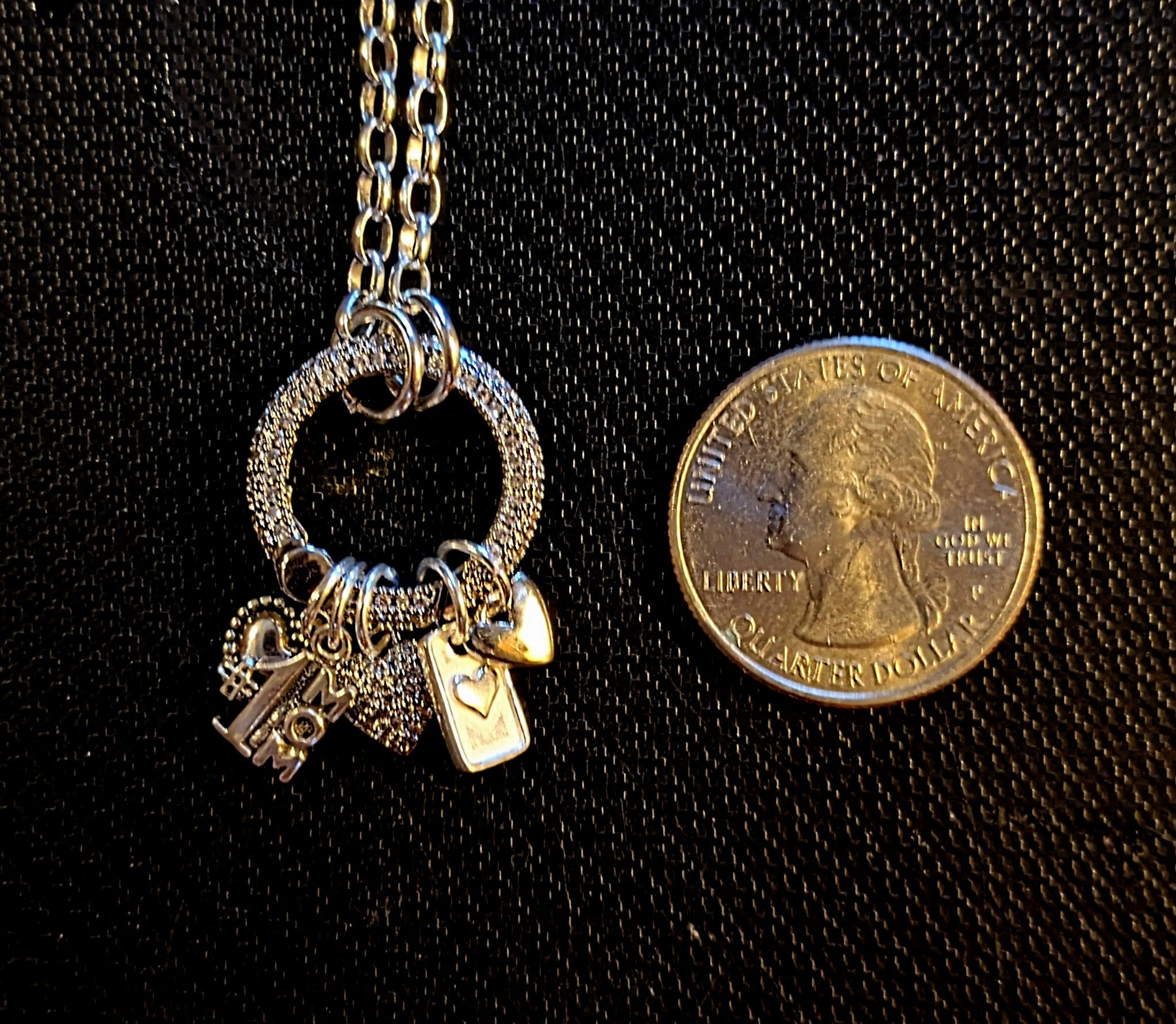 #1 Mom Silver CZ Snap Ring Necklace, .925 Sterling Silver - 20 inch