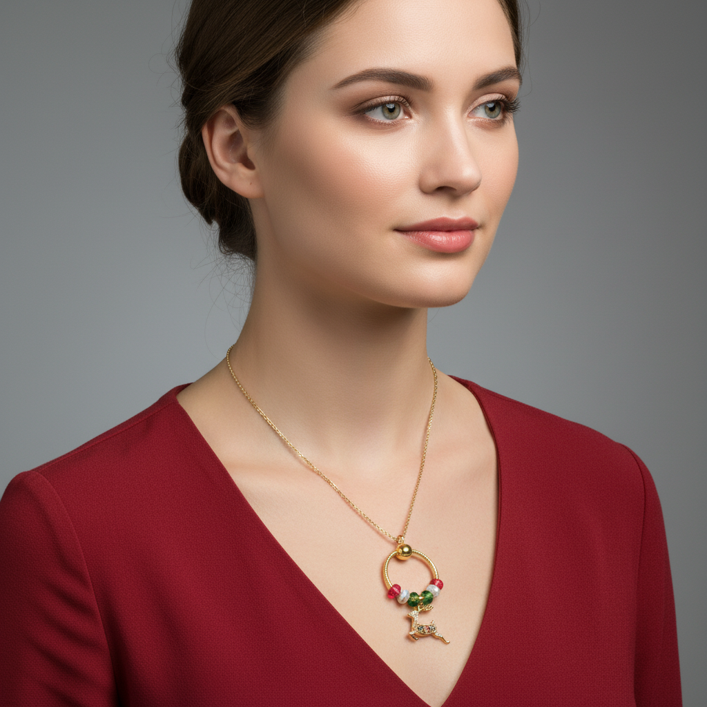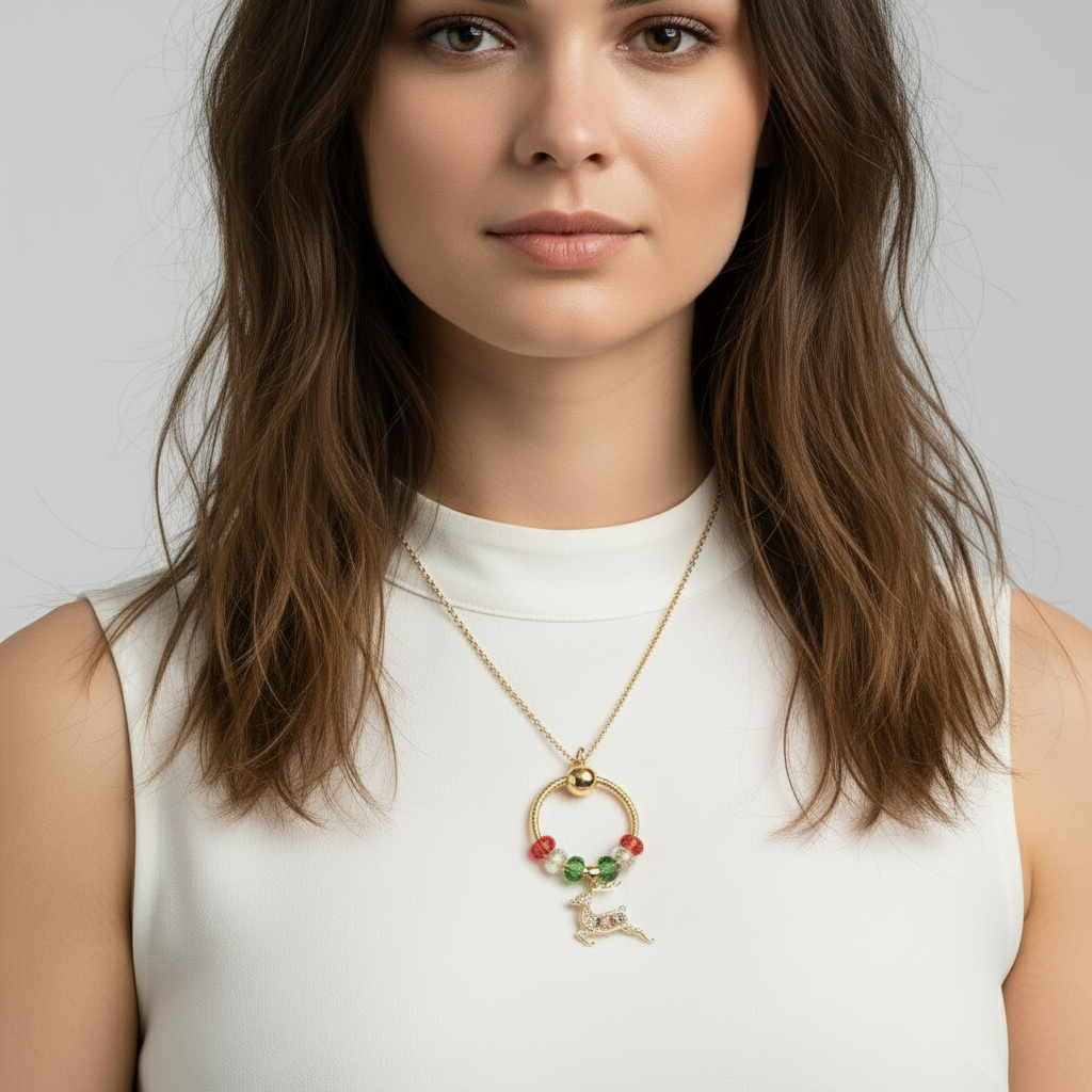 Gold Reindeer Charm Keeper Necklace, Approx. 26 inches