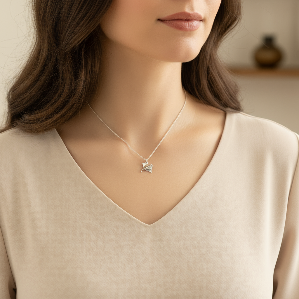Manta Ray Pendant charm necklace, Sterling Silver - 22 inch