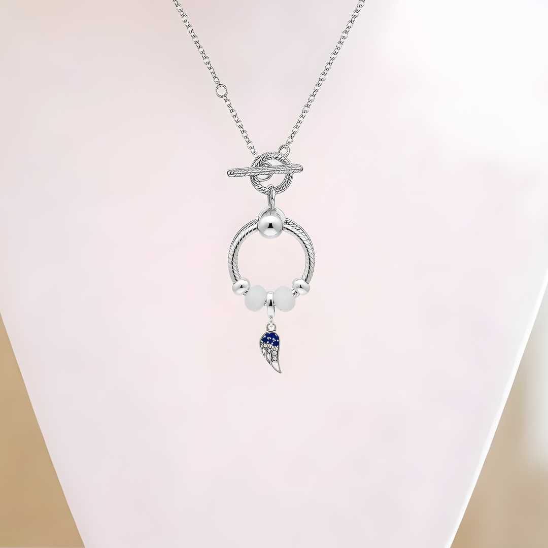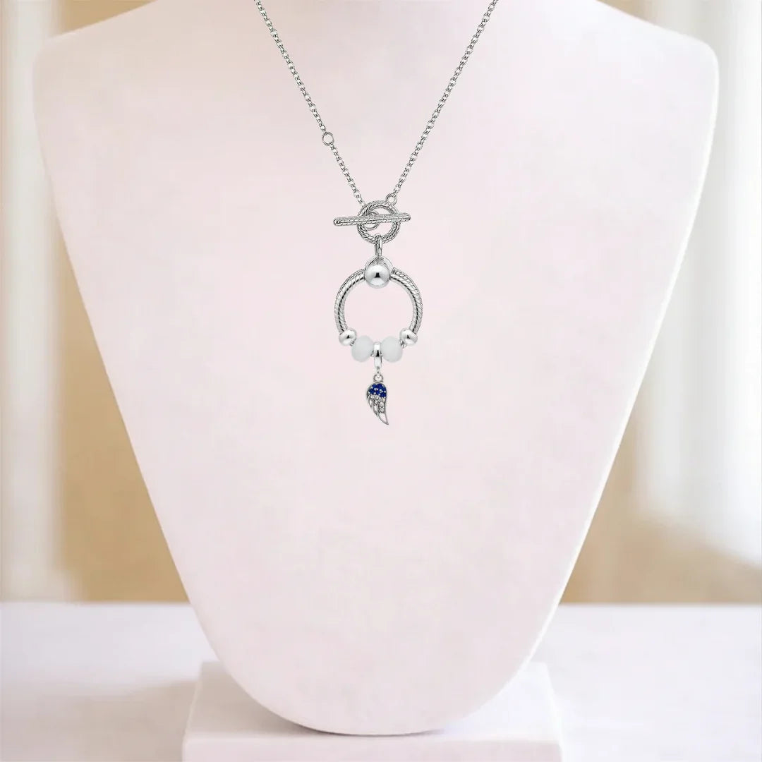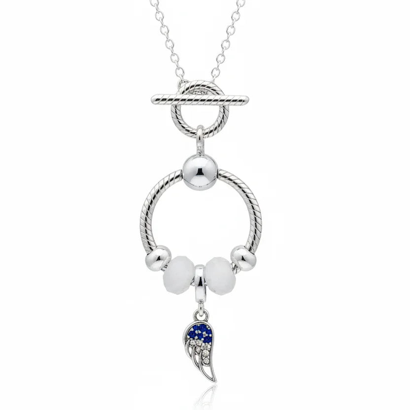 Angel Wing Sterling Silver Toggle Charm Necklace, 20 inches