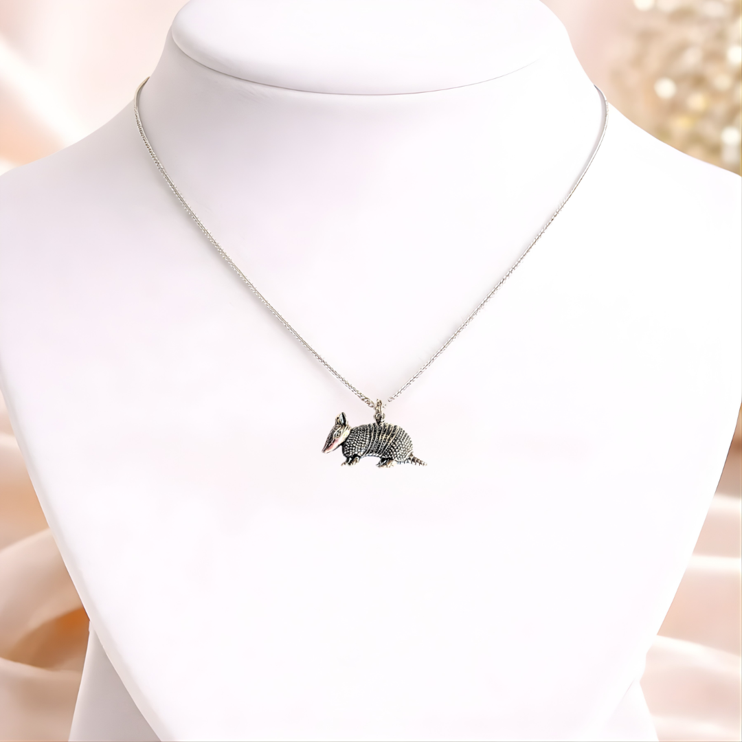 Armadillo Pendant charm necklace, Sterling Silver - 22 inch