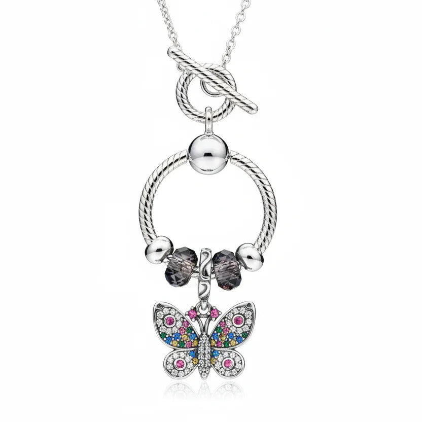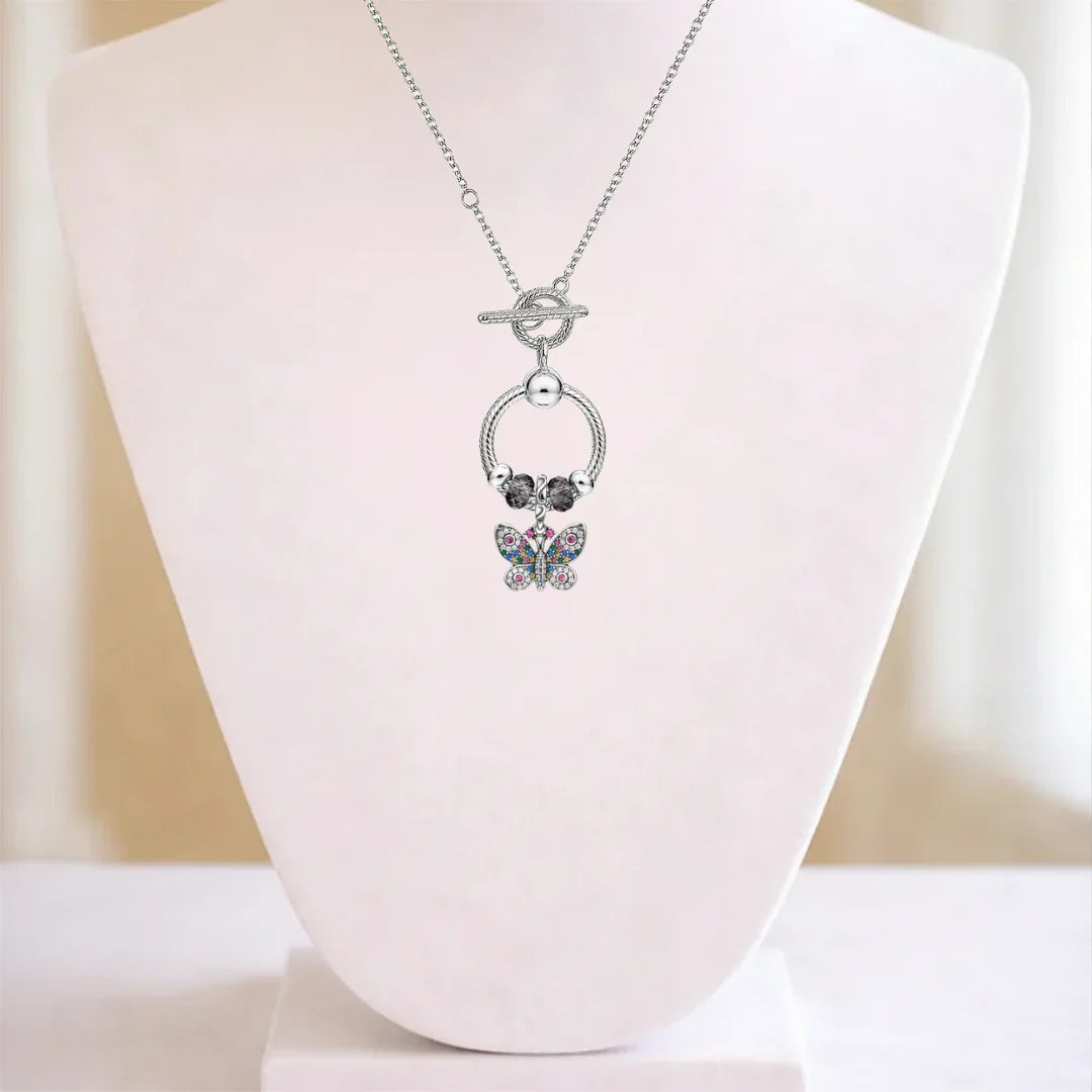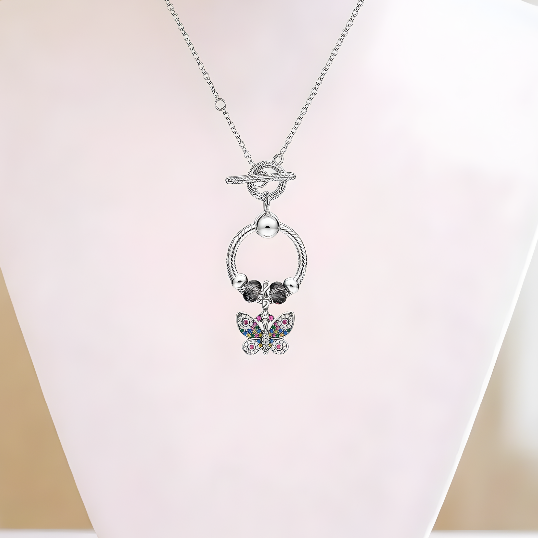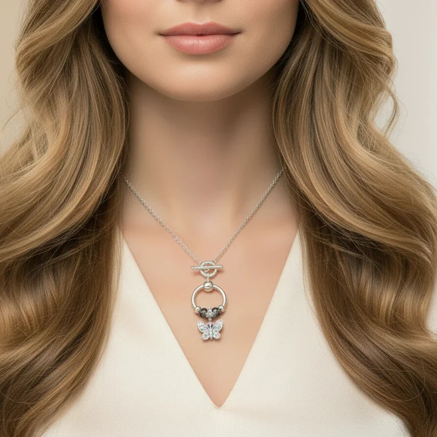 Butterfly Sterling Silver Toggle Charm Necklace, 20 inches