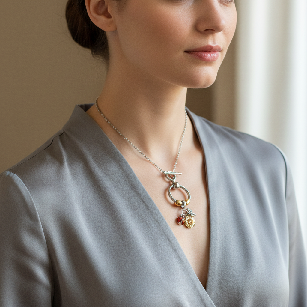 Garden Party Sterling Silver Toggle Charm Necklace, 20 inches
