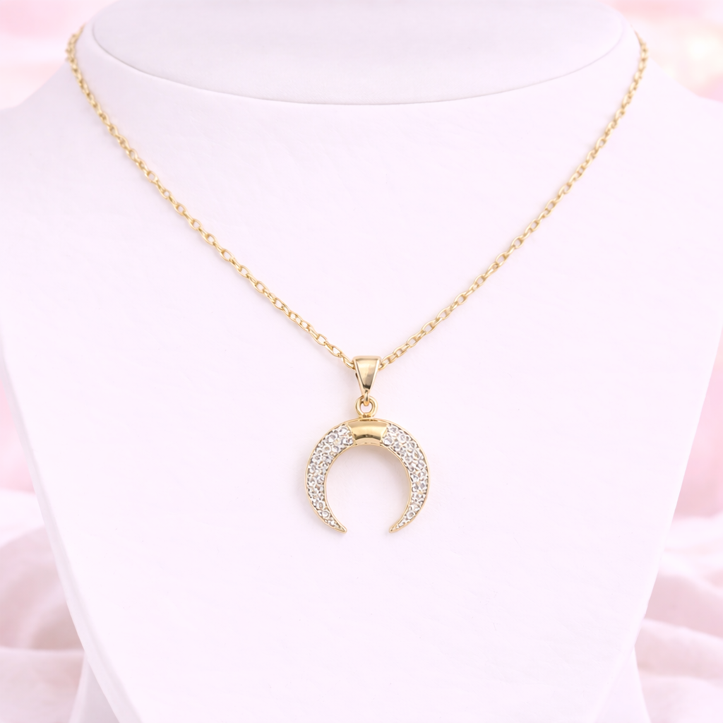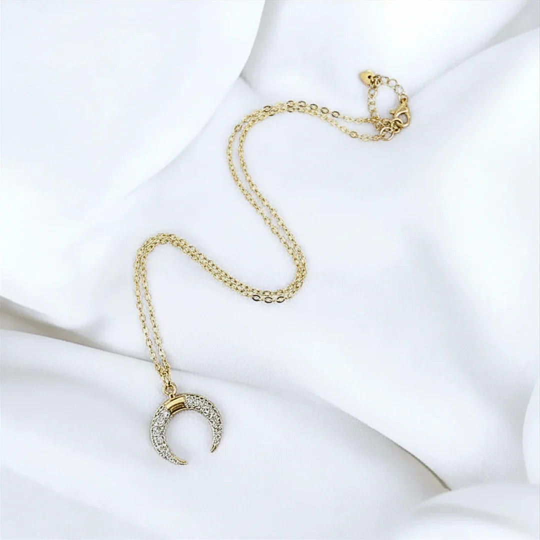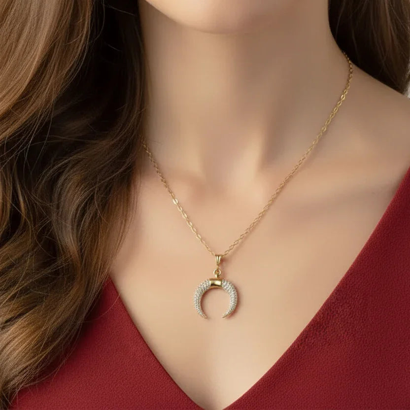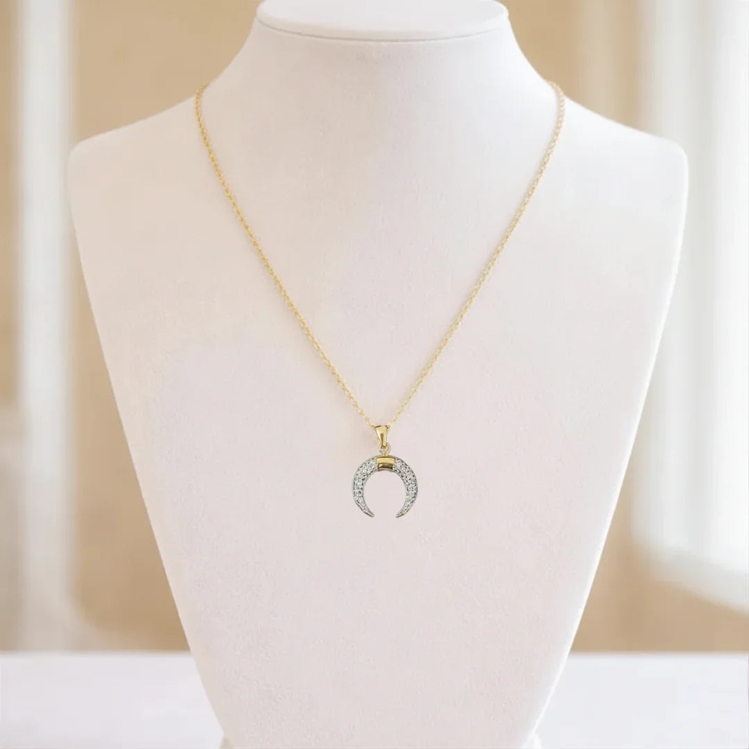 Downward Crescent Moon Necklace, Crescent Horn Necklace, Gold