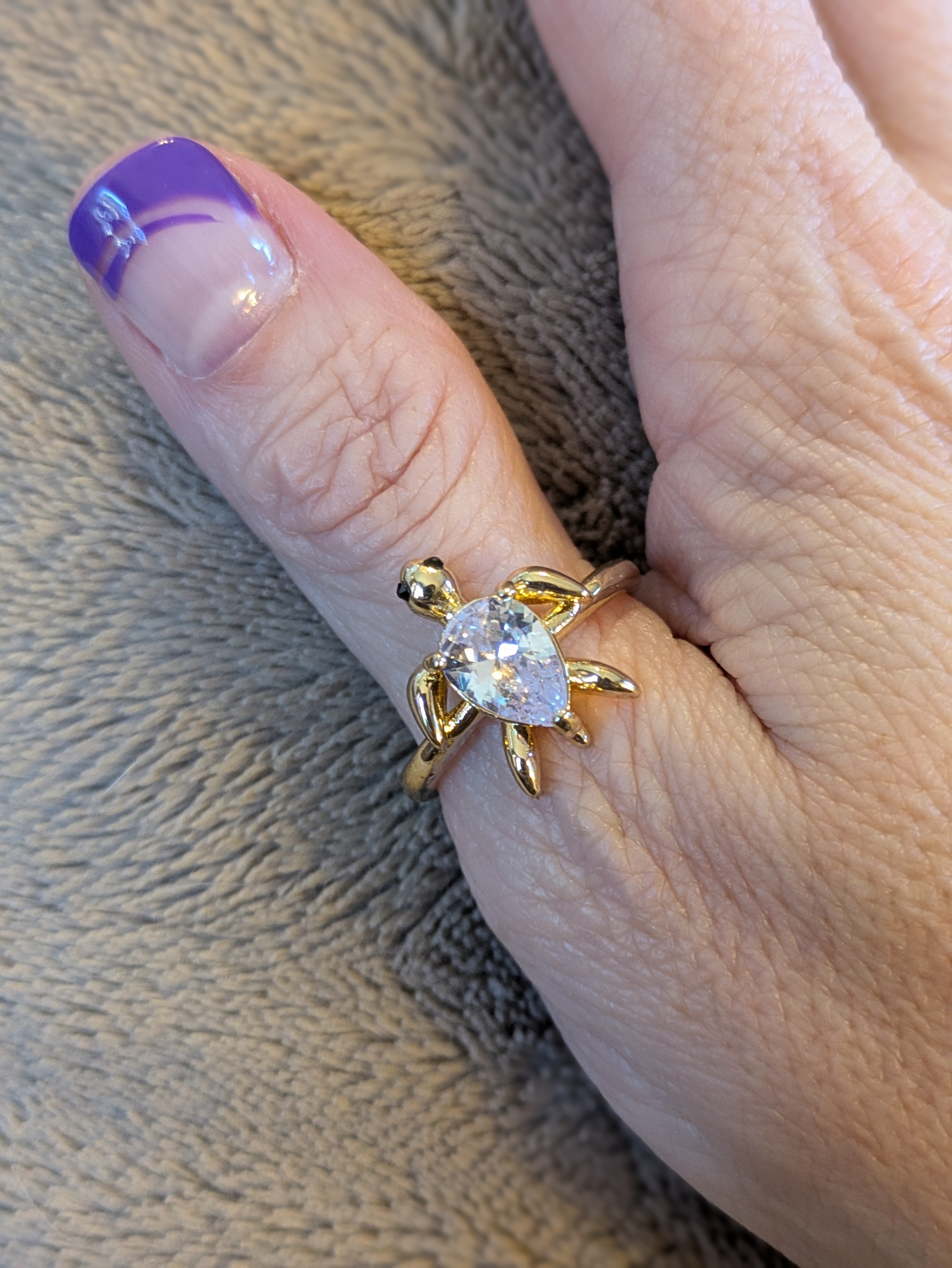 Gold CZ Turtle Ring - Size 9