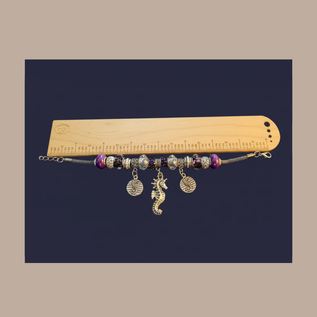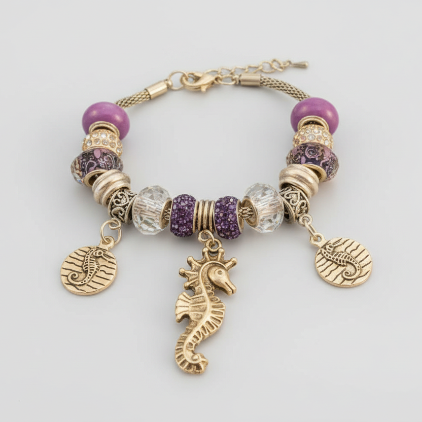 Seahorse European beaded bracelet, Silver