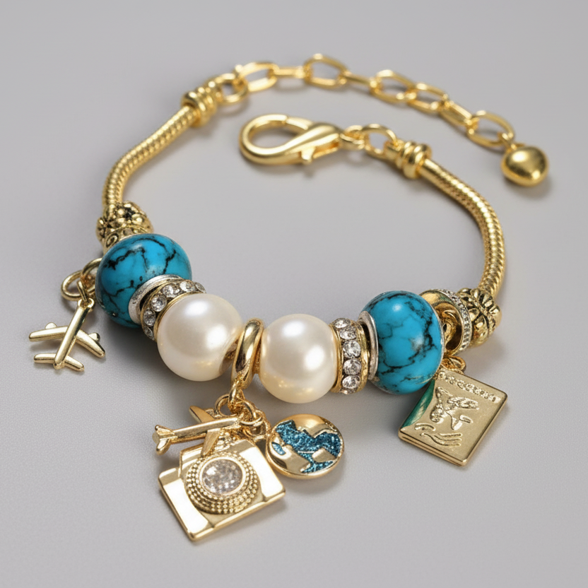 Travel/Vacation European beaded bracelet - Gold