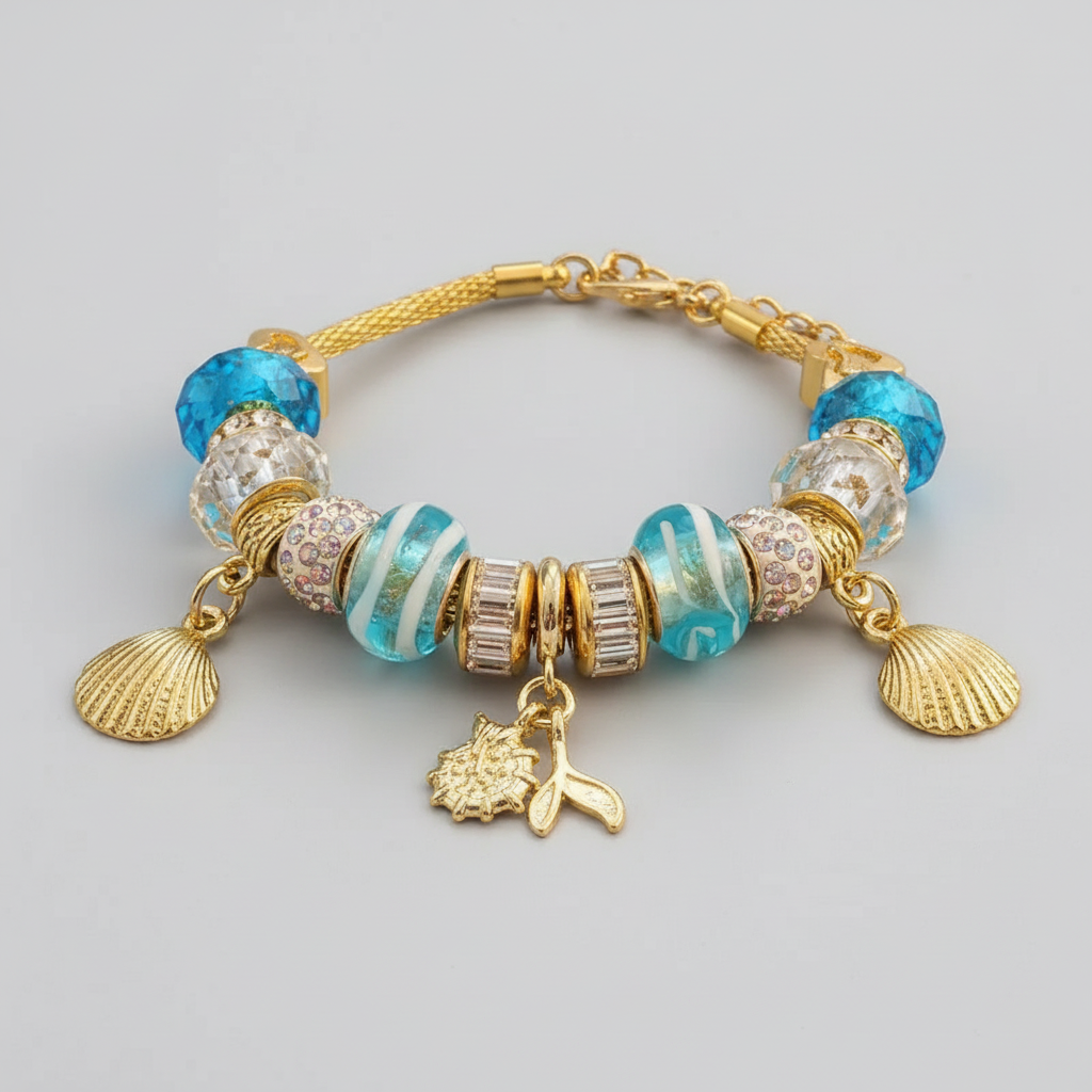 Whale Tail European beaded bracelet - Gold