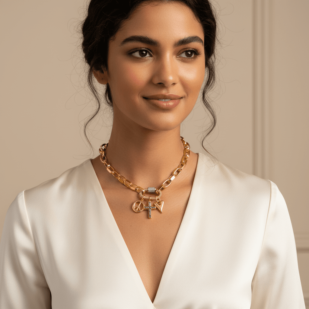 Peace & Love Carabiner Necklace, Gold - 20 inch