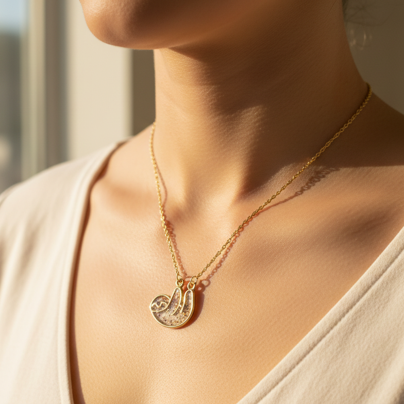 This Adorable Dried Flower Tree Sloth is perfect for the animal lover with a flare for the surreal! Crafted with real dried flowers encased in clear resin, it's strung on your choice of a yellow or rose gold chain. With one look you won't be able to resist this huggable tree sloth!