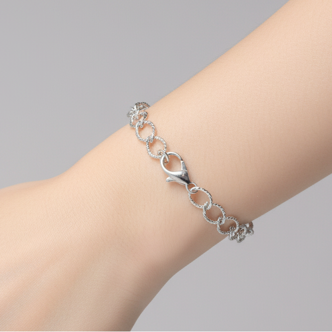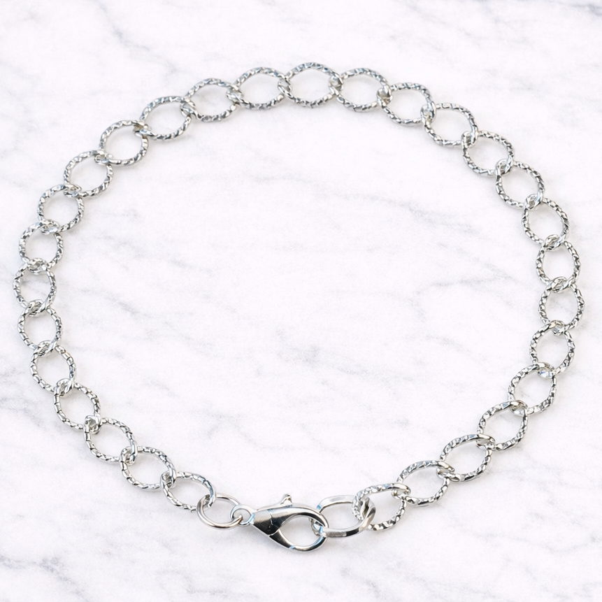 Bright Silver Textured Oval Link Charm Bracelet Base - D.I.Y. - BUILD YOUR CHARM BRACELET!