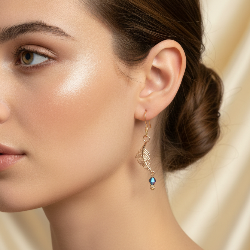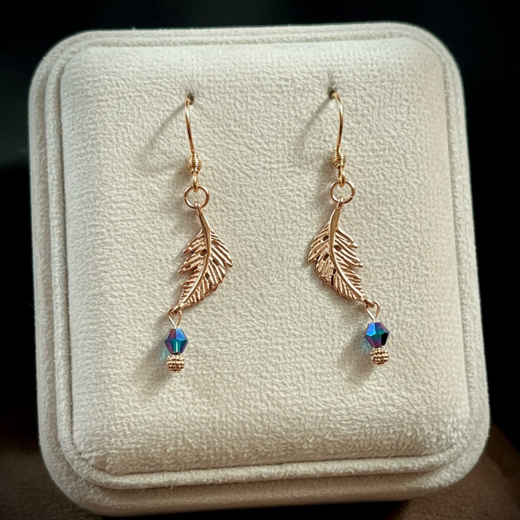 Peacock Crystal Feather Rose Gold dangle earrings