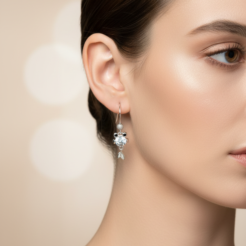 CZ Diamond Koi Fish Sterling Silver dangle earrings
