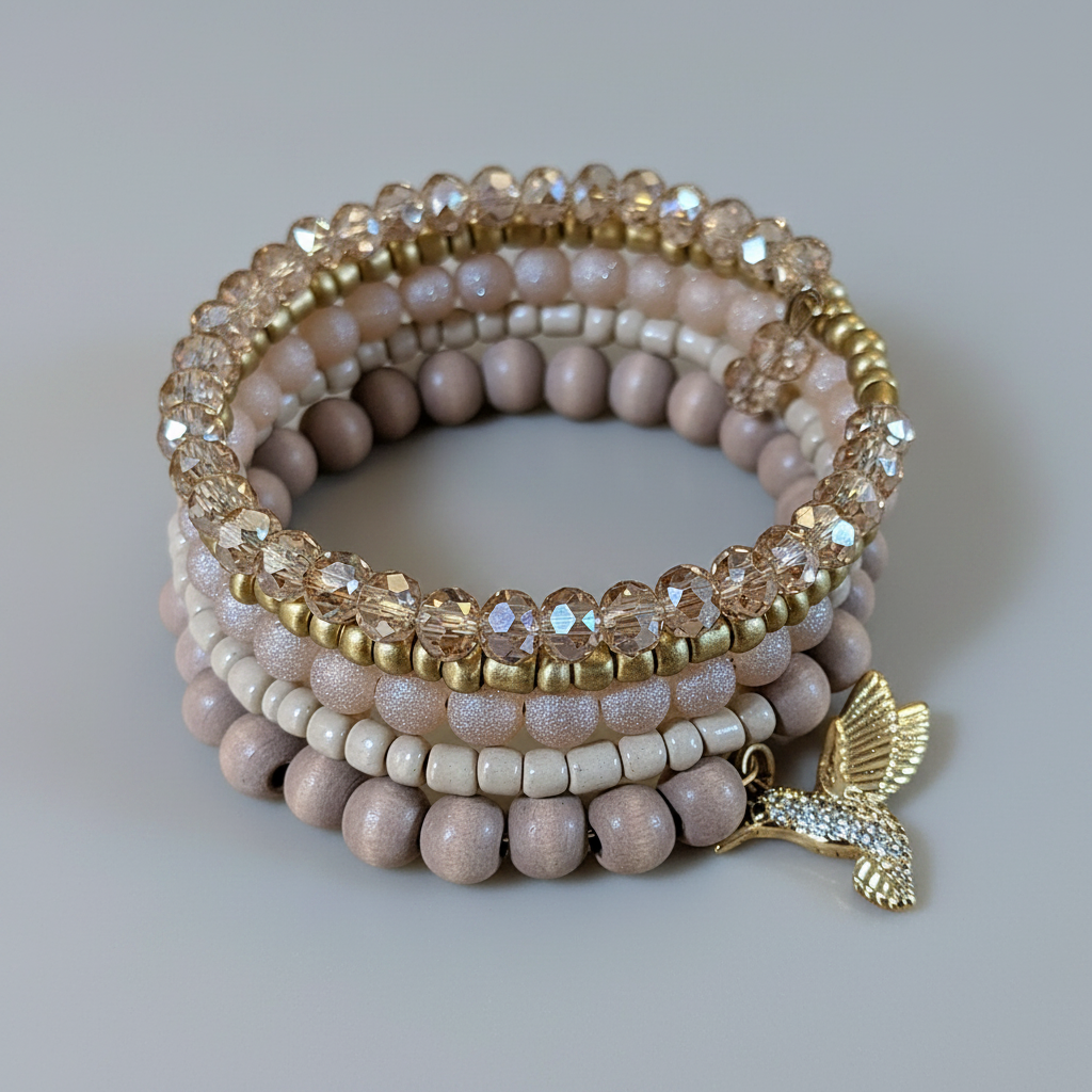 Hummingbird Crystal Beaded Gold Wrap Bracelet