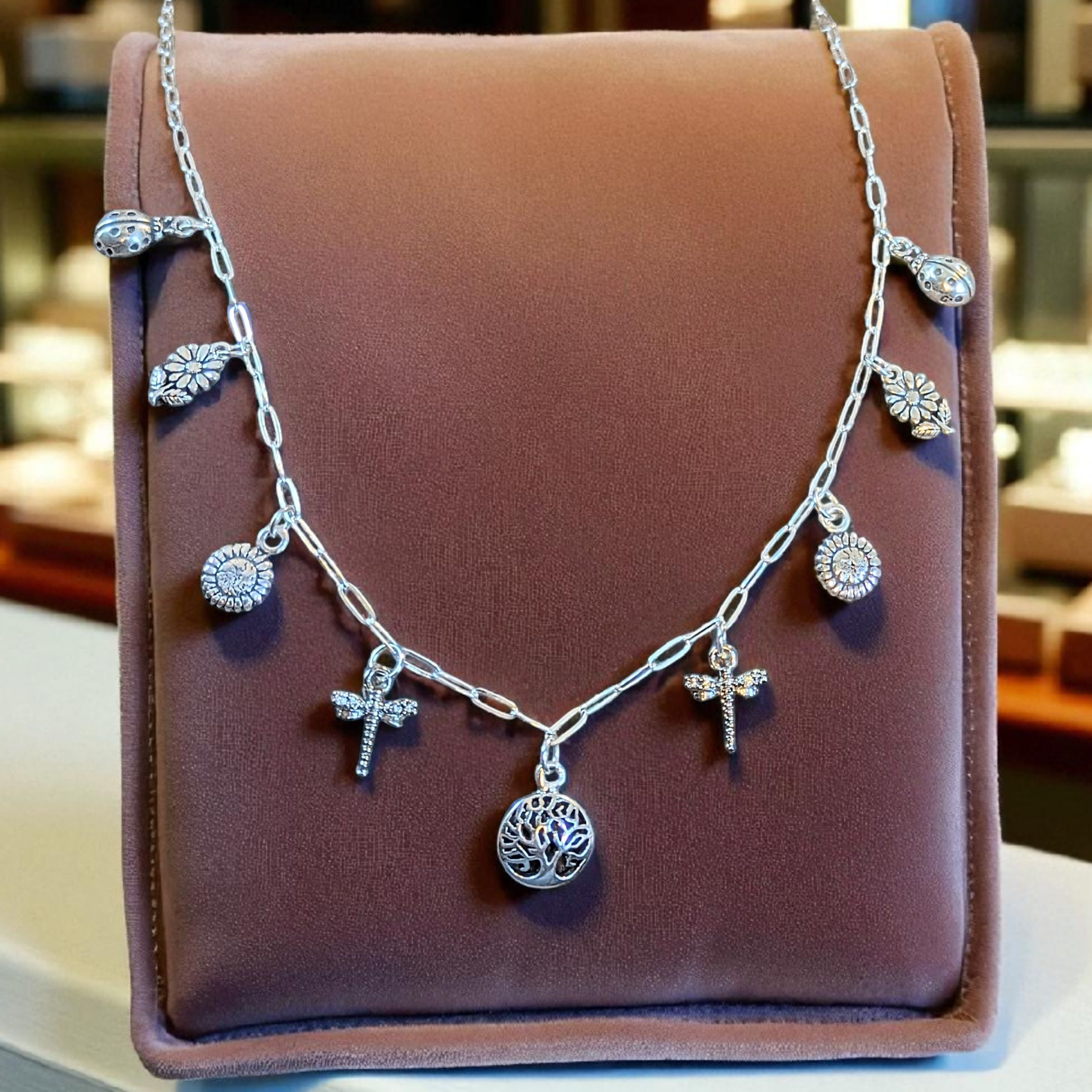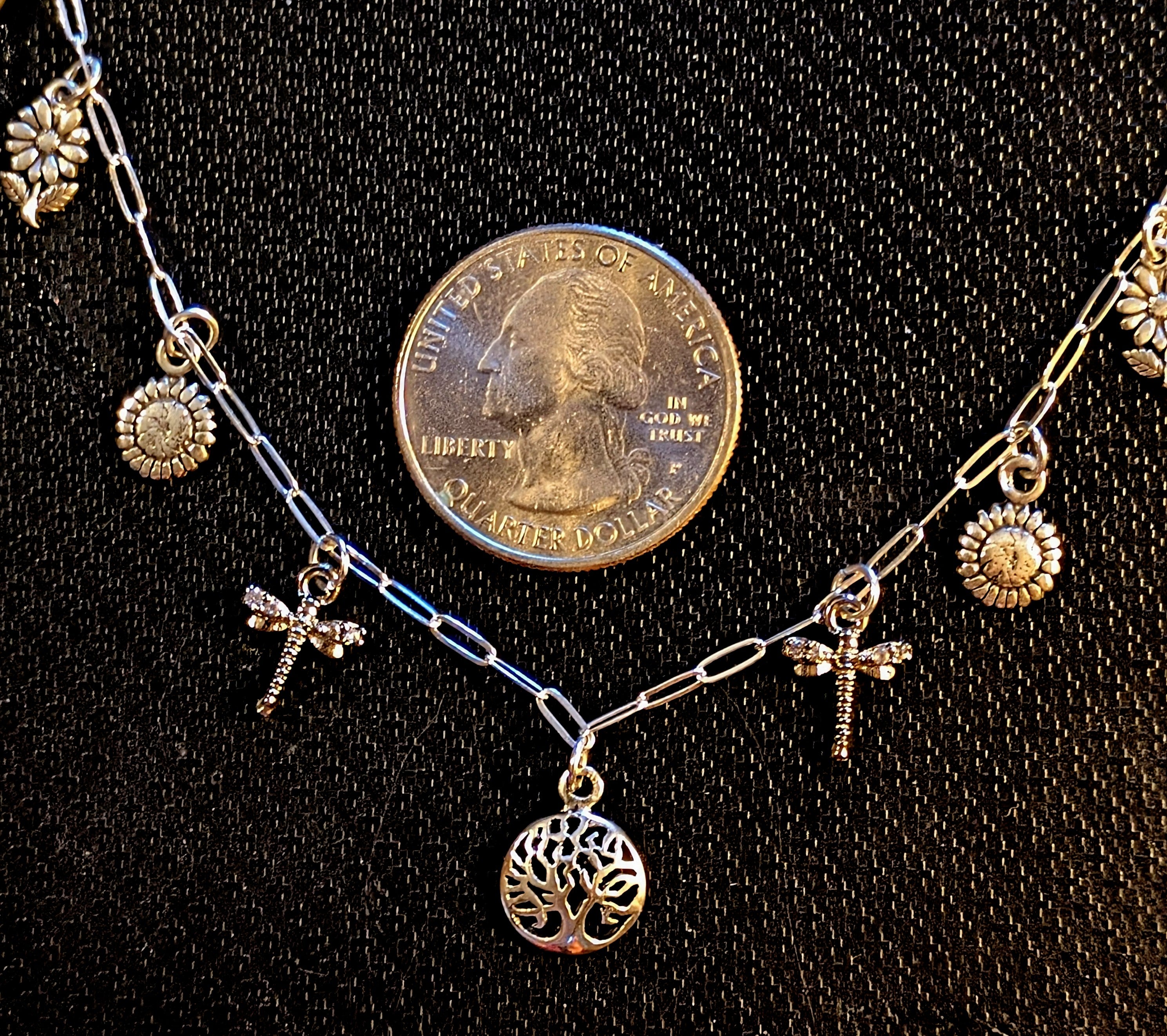 Nature Lover Multi Charm Link Necklace, .925 Sterling Silver - 20 inch