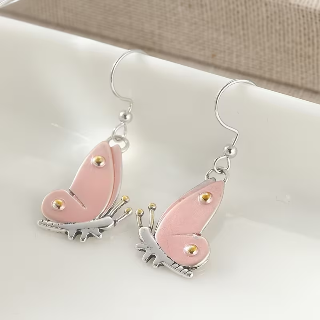 Transform your look with these handcrafted butterfly earrings that blend natural inspiration with modern elegance. The warm copper and cool silver tones create a captivating interplay of light, while sturdy stainless steel hooks ensure all-day comfort and reliability. Perfect for those who appreciate bohemian aesthetics.