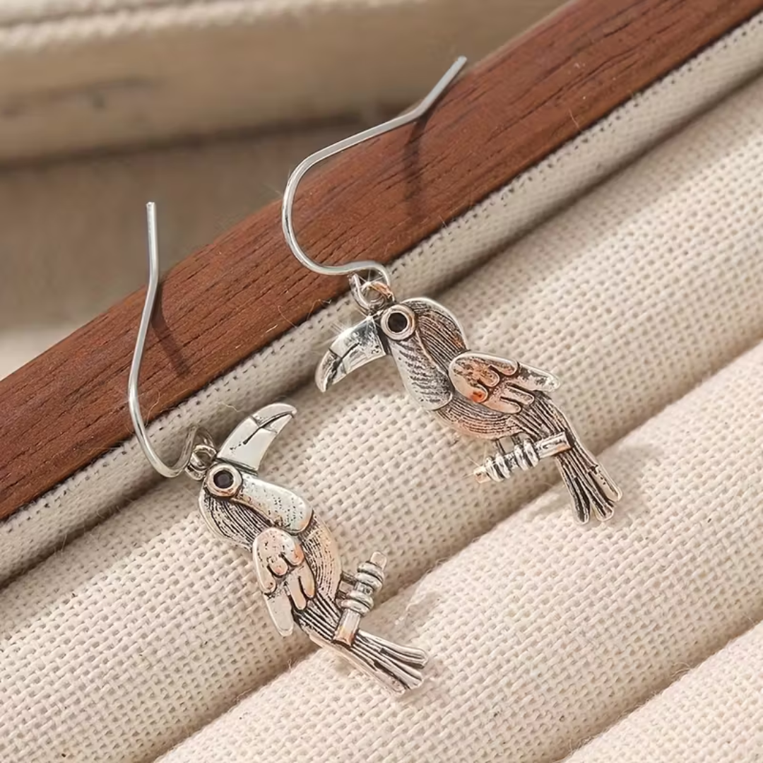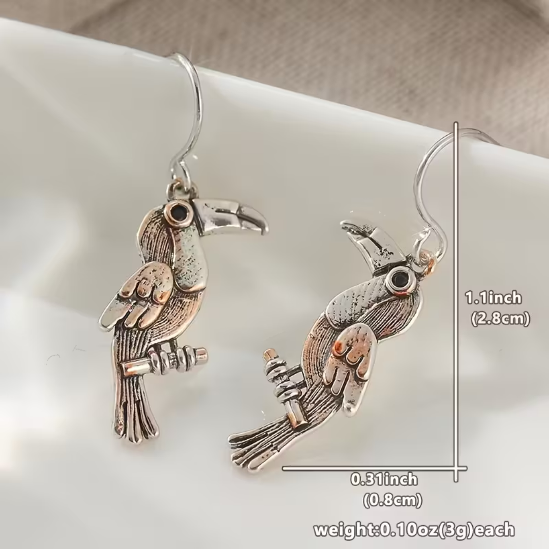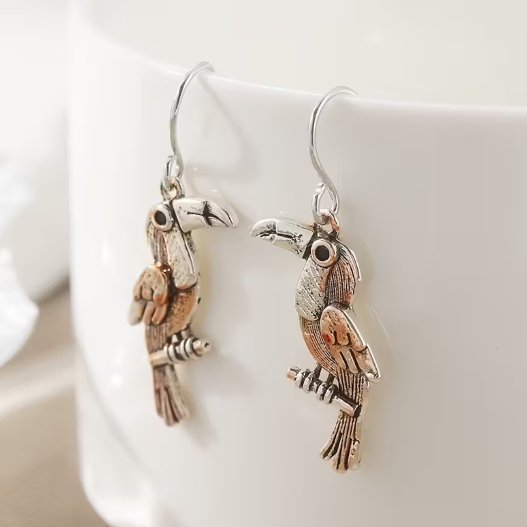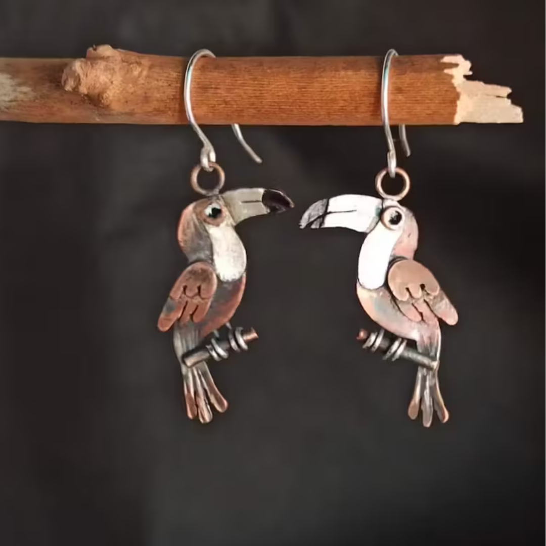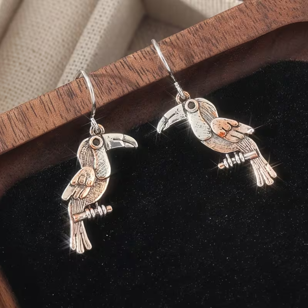 These handcrafted toucan earrings blend rustic charm with contemporary style, featuring a striking mix of copper and silver tones that shimmer with every movement. The durable stainless steel hooks provide all-day wearability without compromising on comfort, making them ideal for both everyday wear and special occasions. With their intricate detailing and bohemian aesthetic, these earrings effortlessly elevate your personal style while sparking meaningful conversations wherever you go.