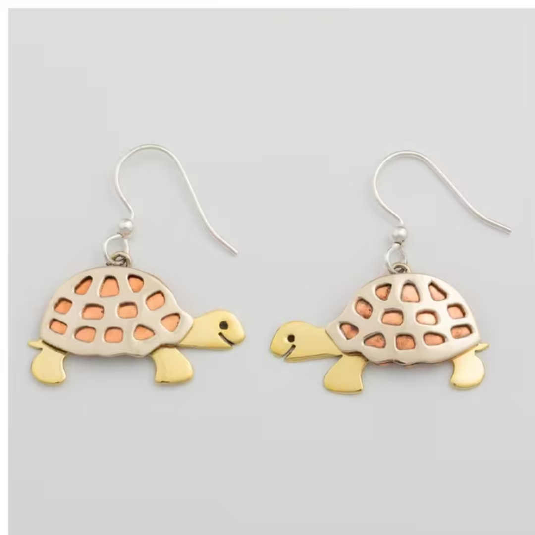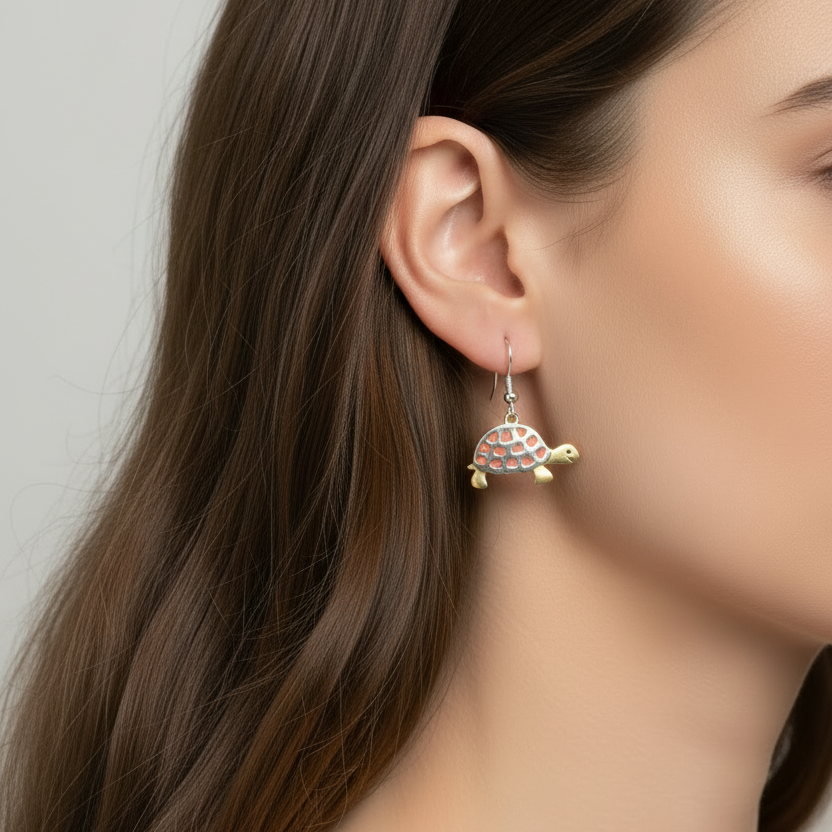 Embrace the perfect balance of earthy elegance and boho flair with these handcrafted turtle earrings. The warm interplay of copper and silver tones creates visual depth that catches light beautifully, while sturdy stainless steel hooks ensure lasting comfort through your busiest days. From casual outings to milestone celebrations, these uniquely detailed earrings become an instant conversation starter that transforms any look with understated sophistication and genuine personality.
