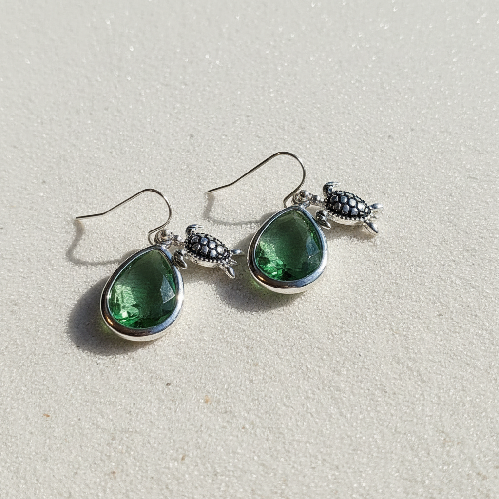 Sea Glass, Sea Turtle Crystal Dangle Earrings