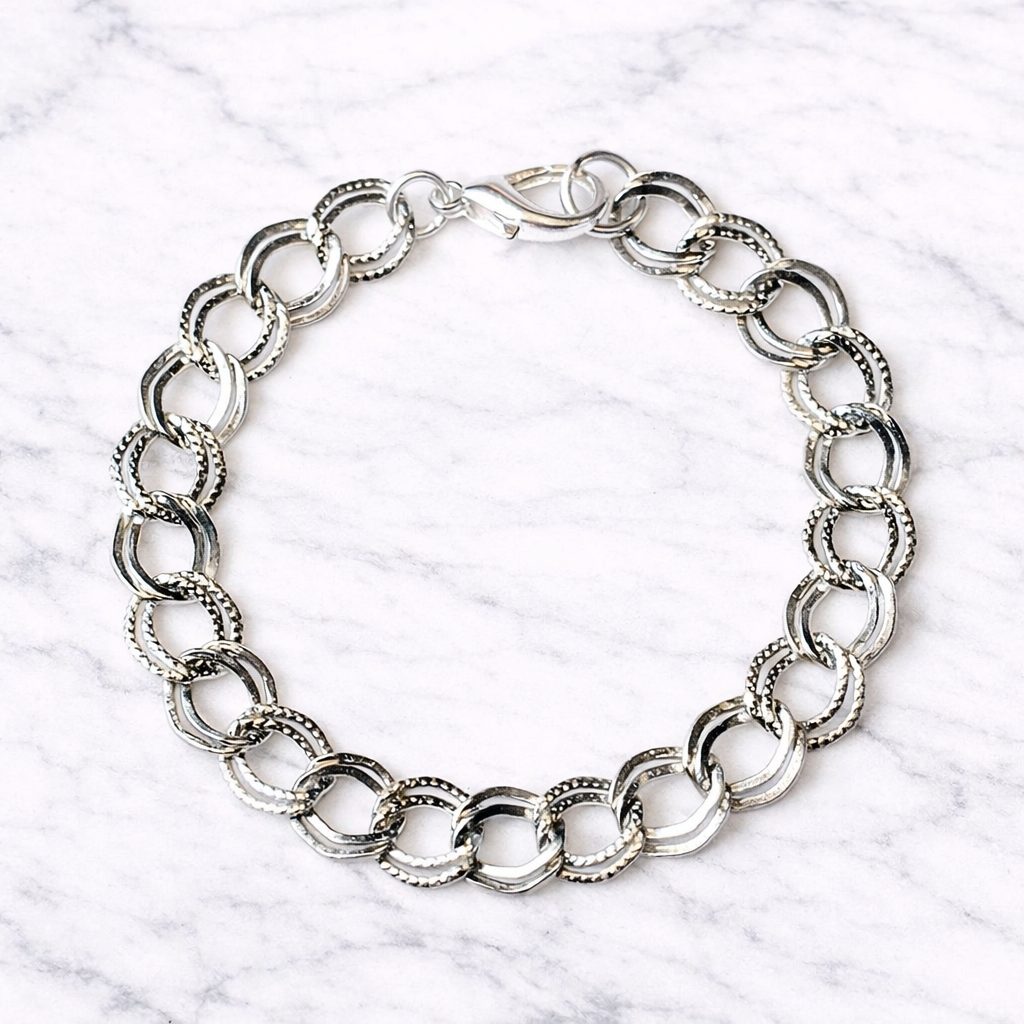 Silver Double Textured Link Charm Bracelet Base - D.I.Y. - BUILD YOUR CHARM BRACELET!